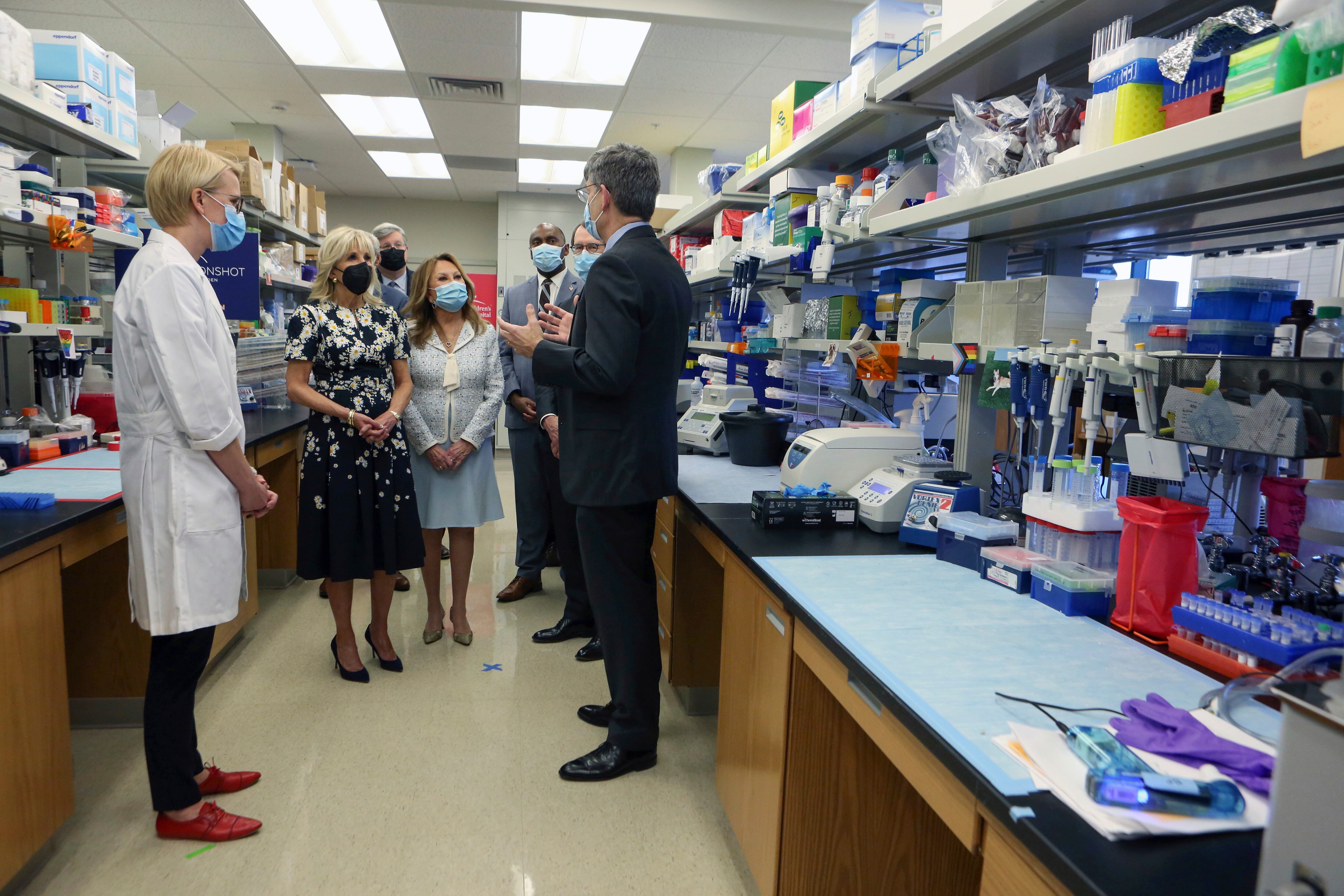 La primera dama estadounidense, Jill Biden, visitó al primer grupo en el hospital el viernes.
