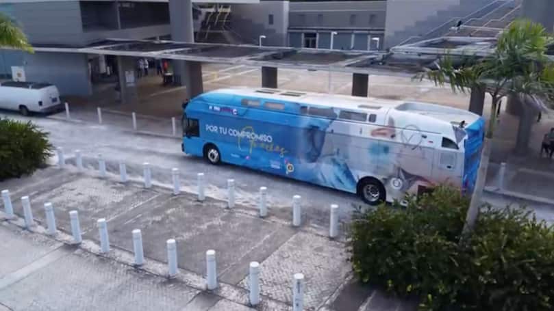 Los autobuses son marca NABI, miden 40 pies de largo y tienen motores híbridos, lo que redunda también en beneficio para el ambiente.