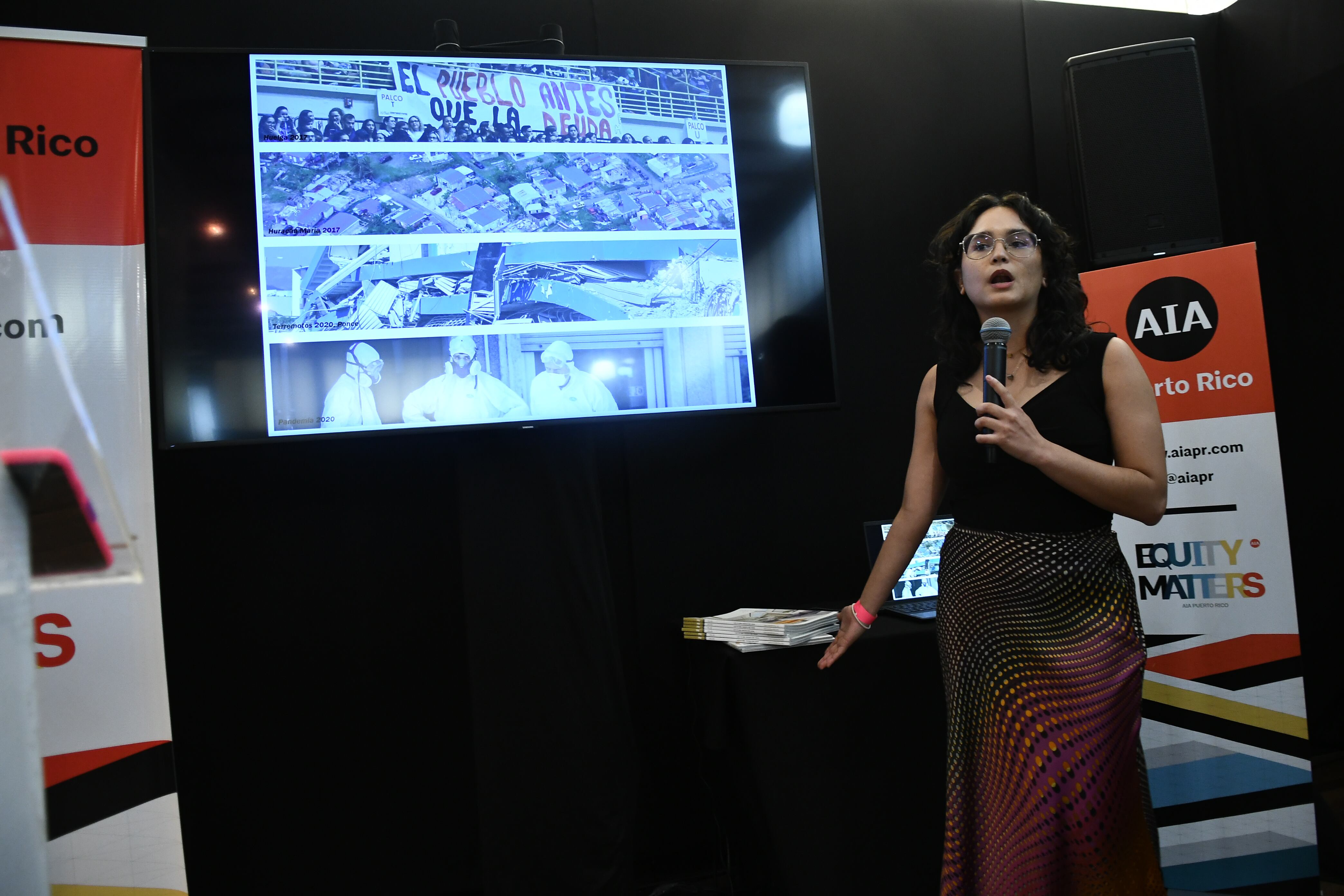 La exposición, cuyo lema es Equity Matters, contó con las presentaciones de 61 arquitectas. En ella, se trazó los momentos más emblemáticos de la profesión desde el año 1966, en el cual se fundó la AIAPR. Argos Puerto Rico, empresa productora y comercializadora de cemento en Puerto Rico, apoyó este evento facilitando que jóvenes estudiantes de las escuelas de Arquitectura presentaran sus proyectos, su visión sobre el futuro de la profesión y lograran así exponerse ante la nutrida audiencia de profesionales de la industria que asistieron al cierre de la exhibición. Este fue uno de los momentos cumbre de la clausura.