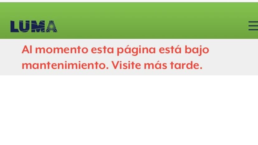 La página web de LUMA Energy, donde se encuentran los mapas que indican qué pueblos se encuentran sin luz, se encuentra bajo mantenimiento. Esto sucede luego que la compañía asegurara que 345,600 clientes ya cuentan con el servicio de energía eléctrica.