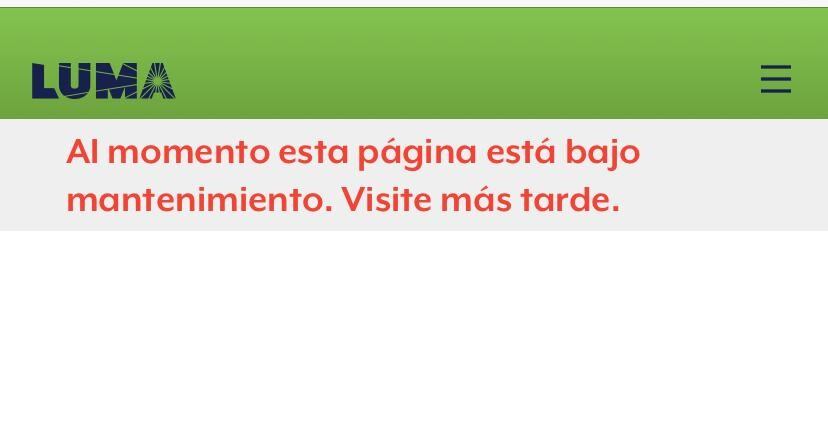 La página web de LUMA Energy, donde se encuentran los mapas que indican qué pueblos se encuentran sin luz, se encuentra bajo mantenimiento. Esto sucede luego que la compañía asegurara que 345,600 clientes ya cuentan con el servicio de energía eléctrica.