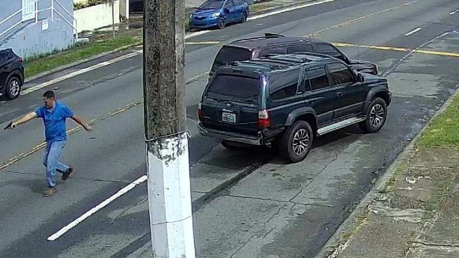 Un video de seguridad muestra a Clemente bajar de su vehículo y utilizar un bate para golpear el automóvil de Meléndez Suárez, quien procede a salir y disparar en repetidas ocasiones contra el primero.