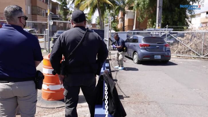 En el intento de robo los agentes dispararon contra el individuo identificado como Alvin Irizarry Rivera para impedir que saliera con el vehículo. El sospechoso chocó contra el portón y terminó con una herida de bala.