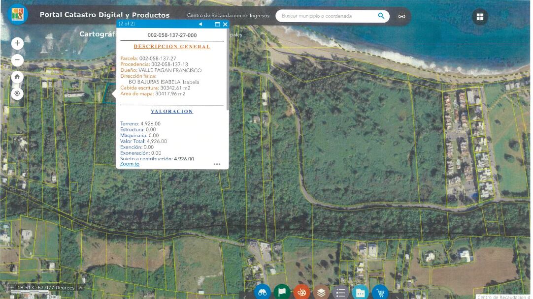 “El propósito de la acción ante el DRNA es que se investigue un posible daño ambiental que se ha identificado en la zona. Personalmente estuve en el lugar con personal de nuestra Policía Municipal y voluntarios de la organización ambientalista CocoPR, en un predio de aproximadamente ocho (8) cuerdas donde hay lo que aparenta ser un camino, que no está en los registros del Centro de Recaudación de Ingresos Municipales (CRIM). Allí hay incluso un letrero ofreciendo estacionamiento a $5.00, negocio que no ha sido reportado al Municipio de Isabela”, señaló el alcalde.