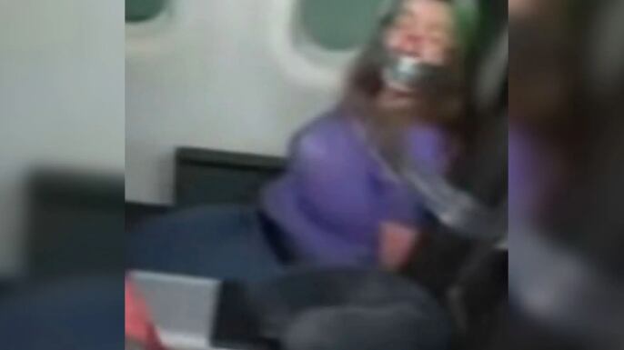 La mujer fue amarrada por los asistentes de vuelo con cinta adhesiva a su asiento luego de pegar cabezazos, escupir y morder a los empleados de la aerolínea.
