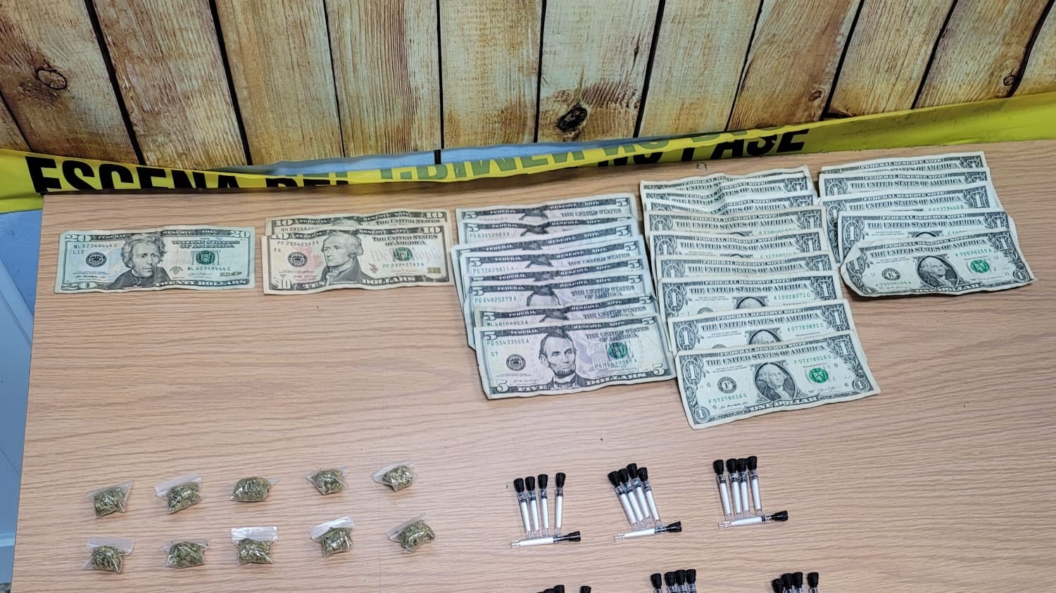 El hallazgo fue el siguiente: 12 bolsitas de picadura de marihuana, 19 copos de picadura de marihuana, 50 cápsulas de crack y $94 en efectivo