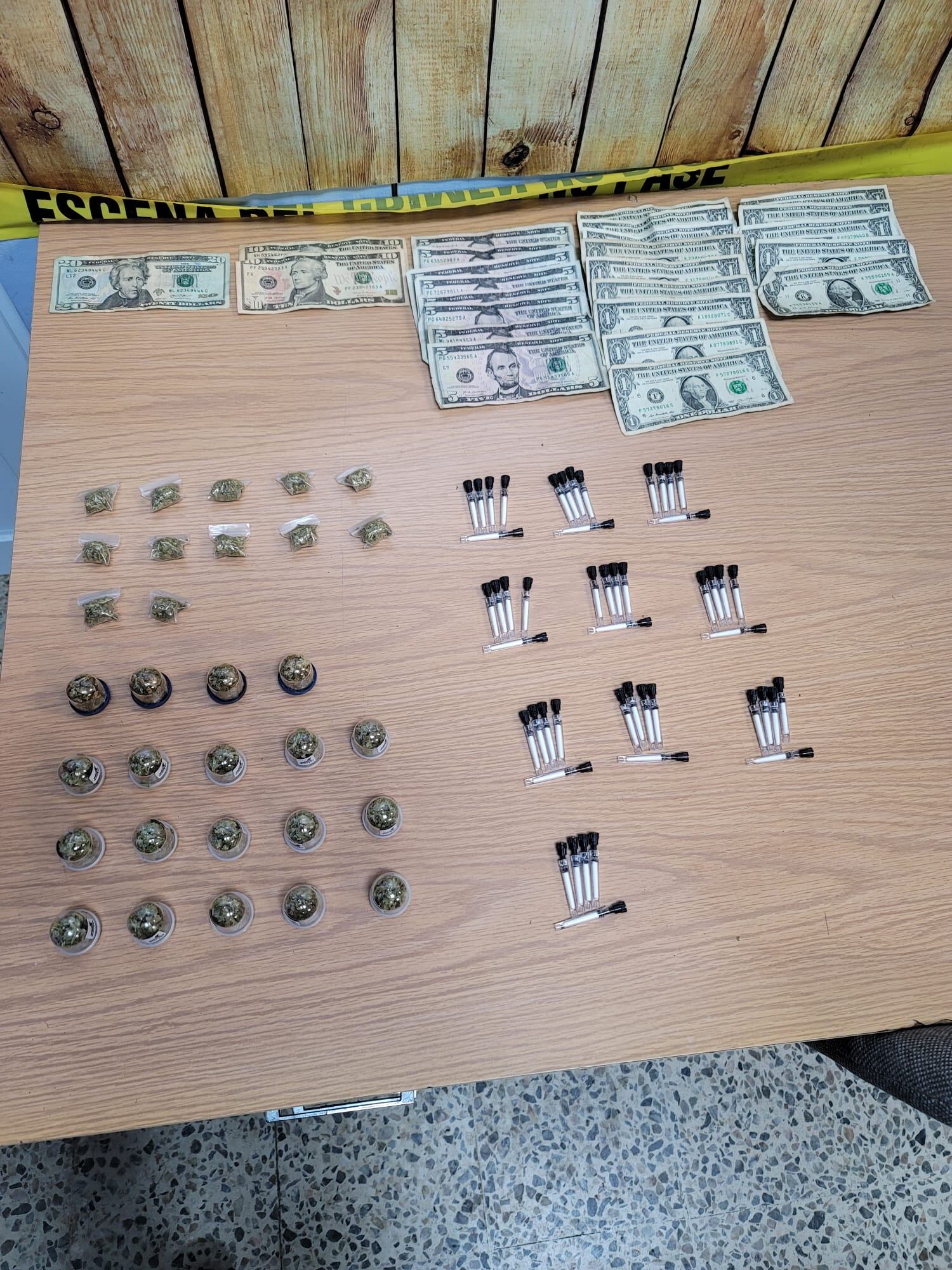 El hallazgo fue el siguiente: 12 bolsitas de picadura de marihuana, 19 copos de picadura de marihuana, 50 cápsulas de crack y $94 en efectivo