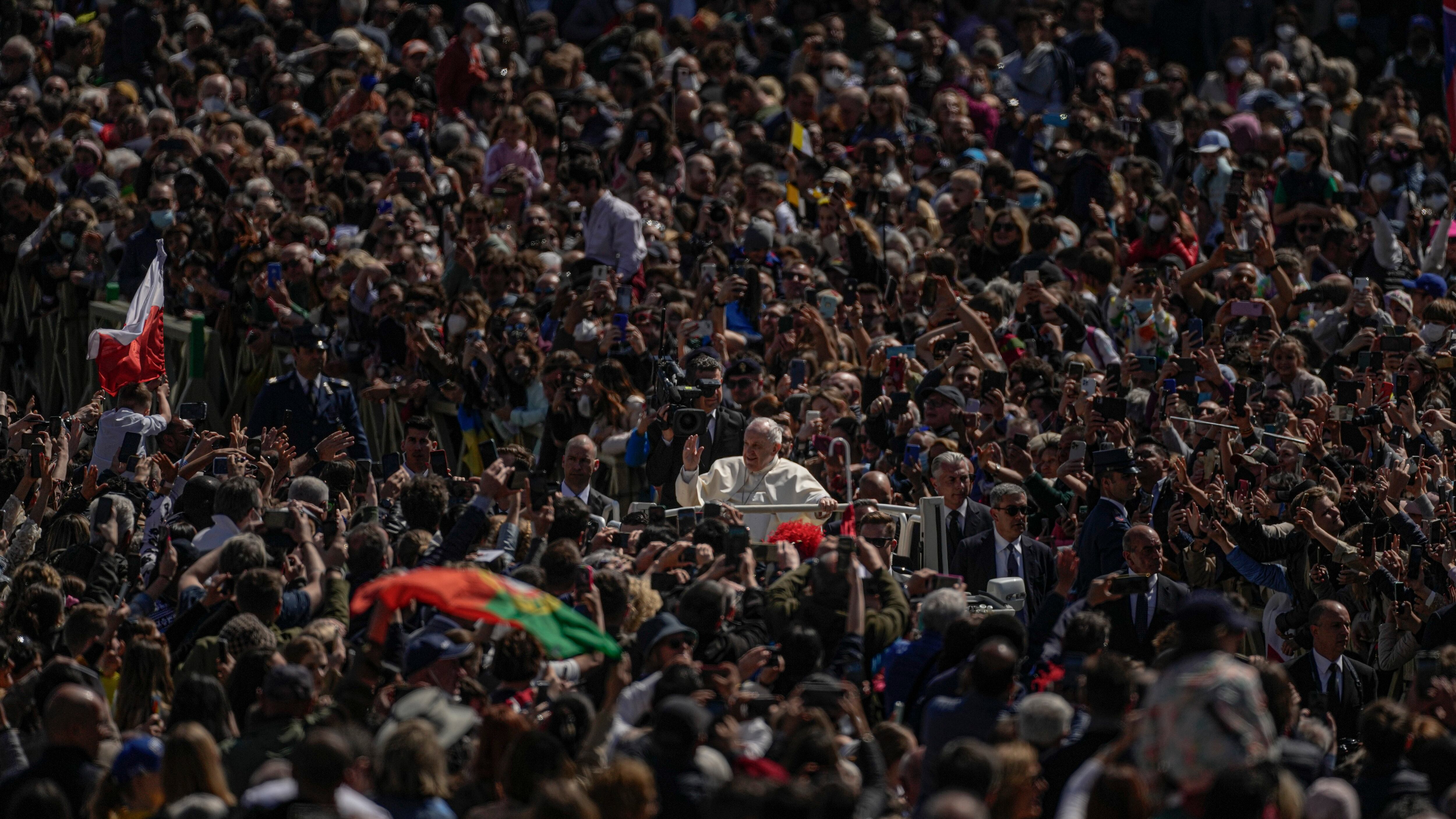 El pontífice terminó así de oficiar la Misa de Domingo de Resurrección en la plaza, que estaba repleta de fieles por primera vez desde que comenzó la pandemia a principios de 2020. Muchas de las 50 mil personas en la explanada y en una avenida cercana aplaudieron cuando el pontífice mencionó a Ucrania.