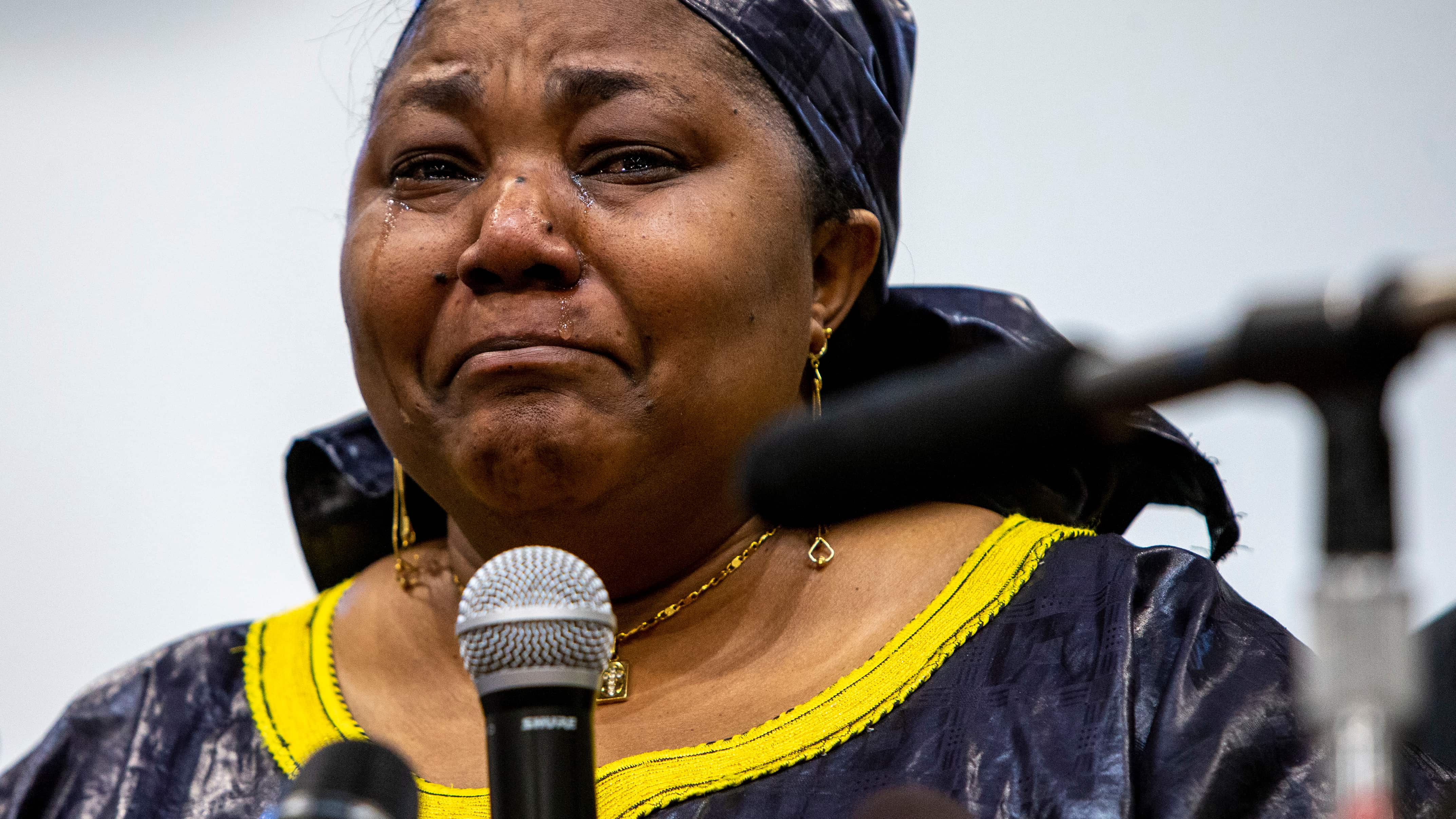 La madre de Patrick Lyoya, Dorcas Lyoya, llora durante una conferencia de prensa en Grand Rapids, Michigan, 14 de abril de 2022. (Cory Morse/The Grand Rapids Press via AP) (Cory Morse | MLive.com/AP)