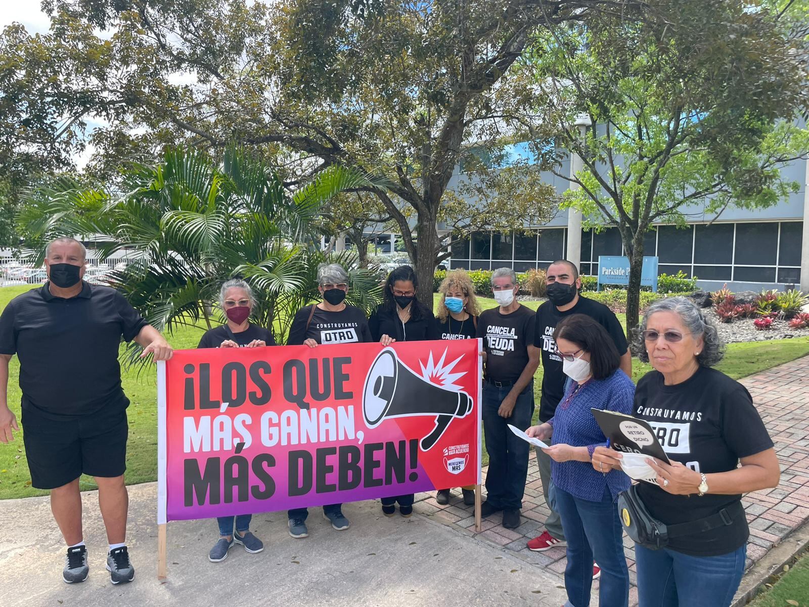 Miembros de Construyamos Otro Acuerdo (COA) se presentaron este miércoles a las oficinas de la Asociación de Industriales de Puerto Rico en Guaynabo, para denunciar las compañías farmacéuticas beneficiarias de exenciones contributivas en medio de la crisis que atraviesa Puerto Rico.
