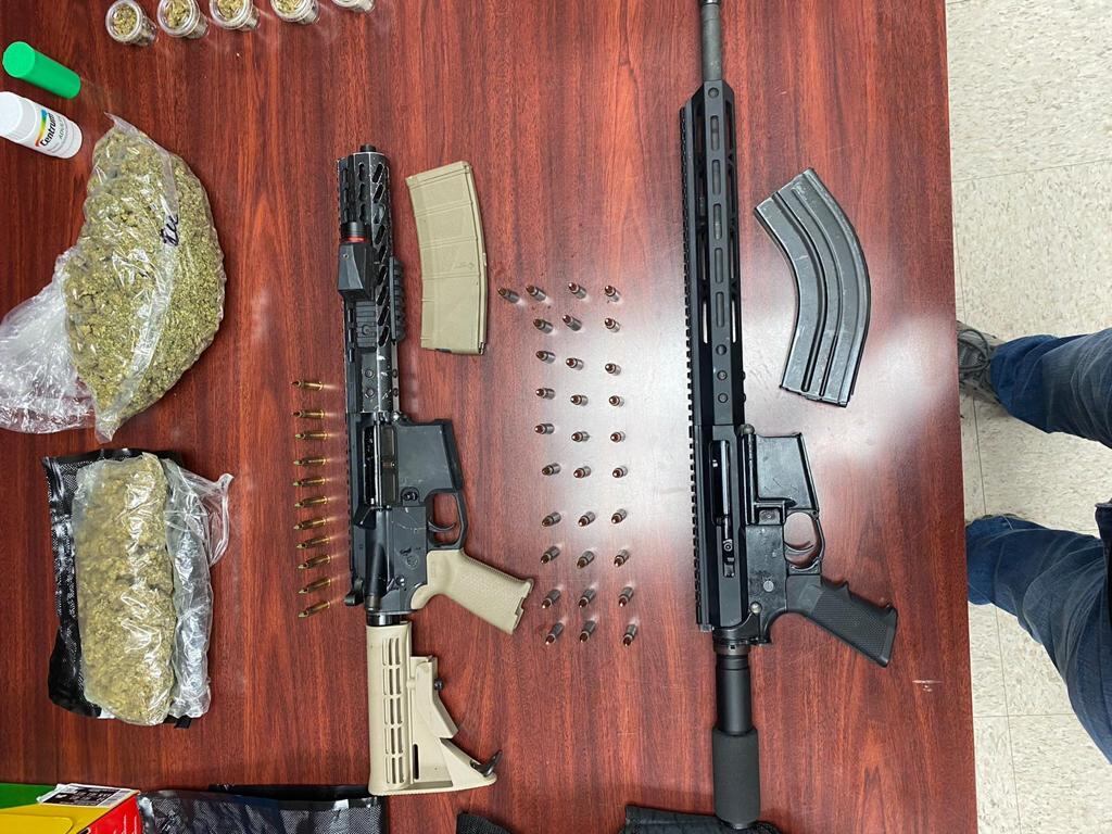 Según la Policía, incautaron dos rifles, uno de ellos sin número de serie, municiones 7.62x39 y .223. Además, hallaron gran cantidad de marihuana en envases.