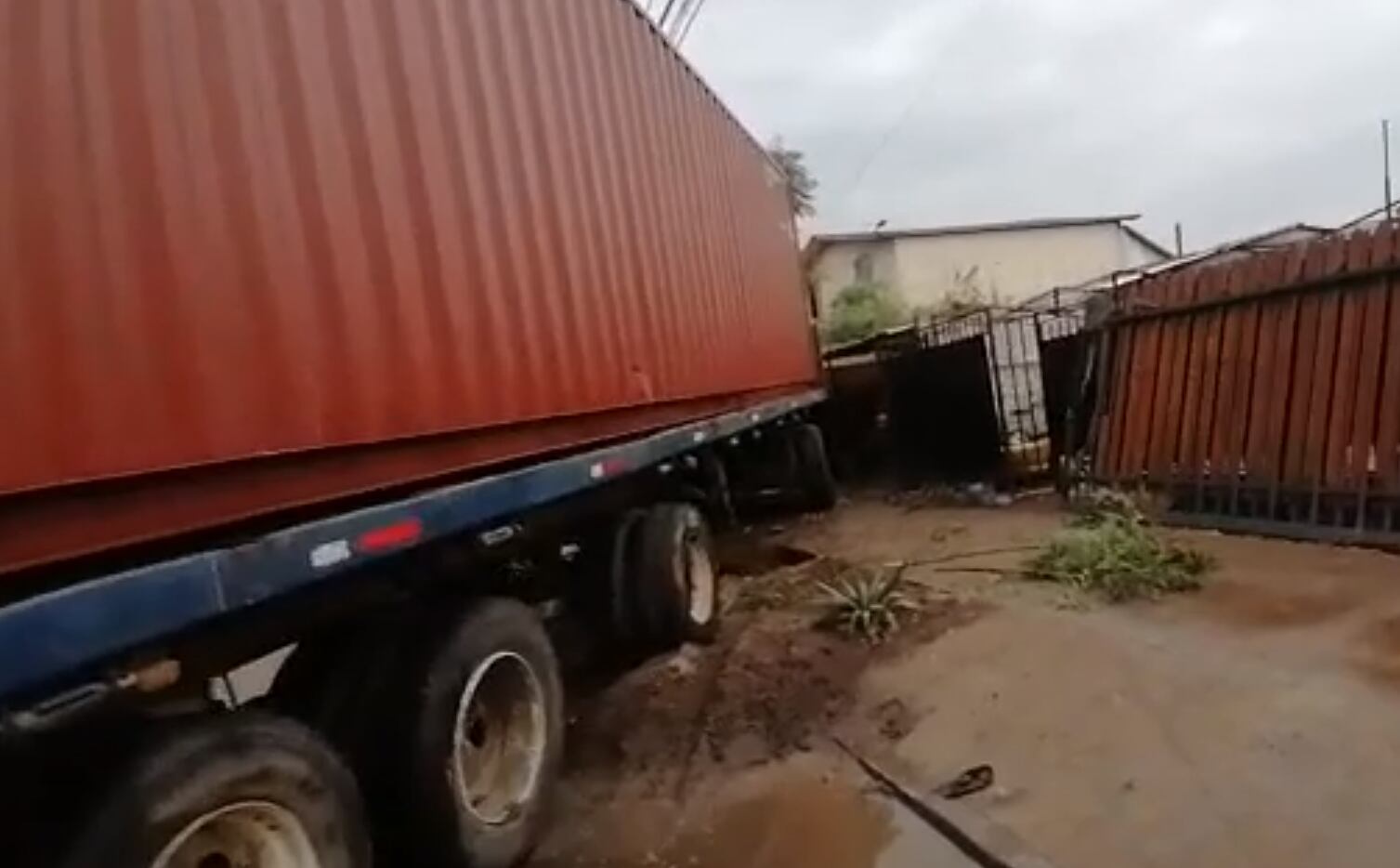 El conductor de un camión de alto tonelaje, de 18 metros de largo, que iba en aparente estado de ebriedad impactó el patio de una residencia y entró al mismo en horas de la madrugada.