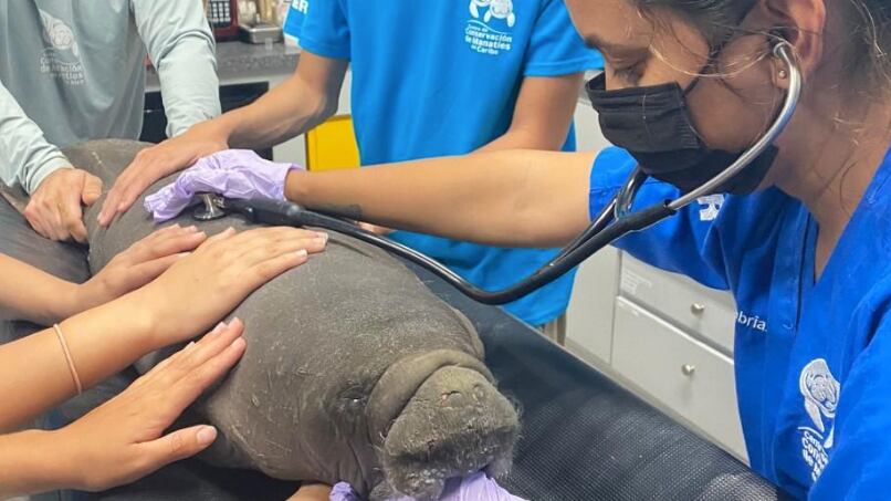 El experto en manatíes explicó que por lo pequeña que es la manatí está desnutrida debido a que con tan corto tiempo de nacida no puede alimentarse por cuenta propia. “En esta etapa procuraremos alimentarla y tratar de controlarle la taquicardia y las respiraciones rápidas que le afectan. Ahora en la mañana le efectuaremos nuevamente laboratorios y placas para confirmar su estado de salud”, sostuvo.