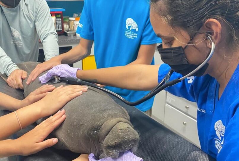 El experto en manatíes explicó que por lo pequeña que es la manatí está desnutrida debido a que con tan corto tiempo de nacida no puede alimentarse por cuenta propia. “En esta etapa procuraremos alimentarla y tratar de controlarle la taquicardia y las respiraciones rápidas que le afectan. Ahora en la mañana le efectuaremos nuevamente laboratorios y placas para confirmar su estado de salud”, sostuvo.
