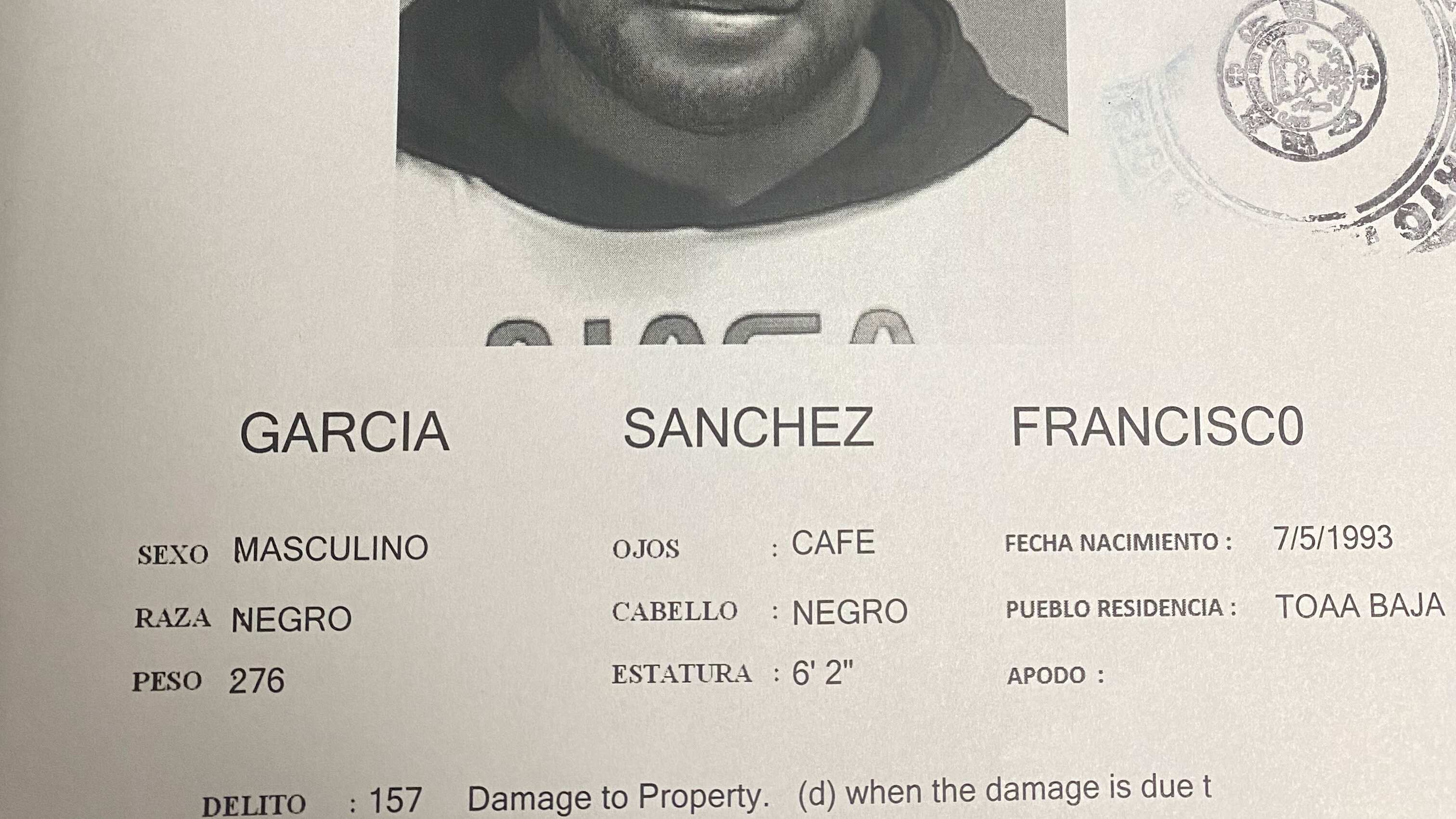 García Sánchez figuraba entre uno de los 10 más buscados del área de Bayamón por Tentativa Grave y Daño Agravado, con una fianza de $200 mil dólares, por hechos cometidos el 7 de marzo de 2022.