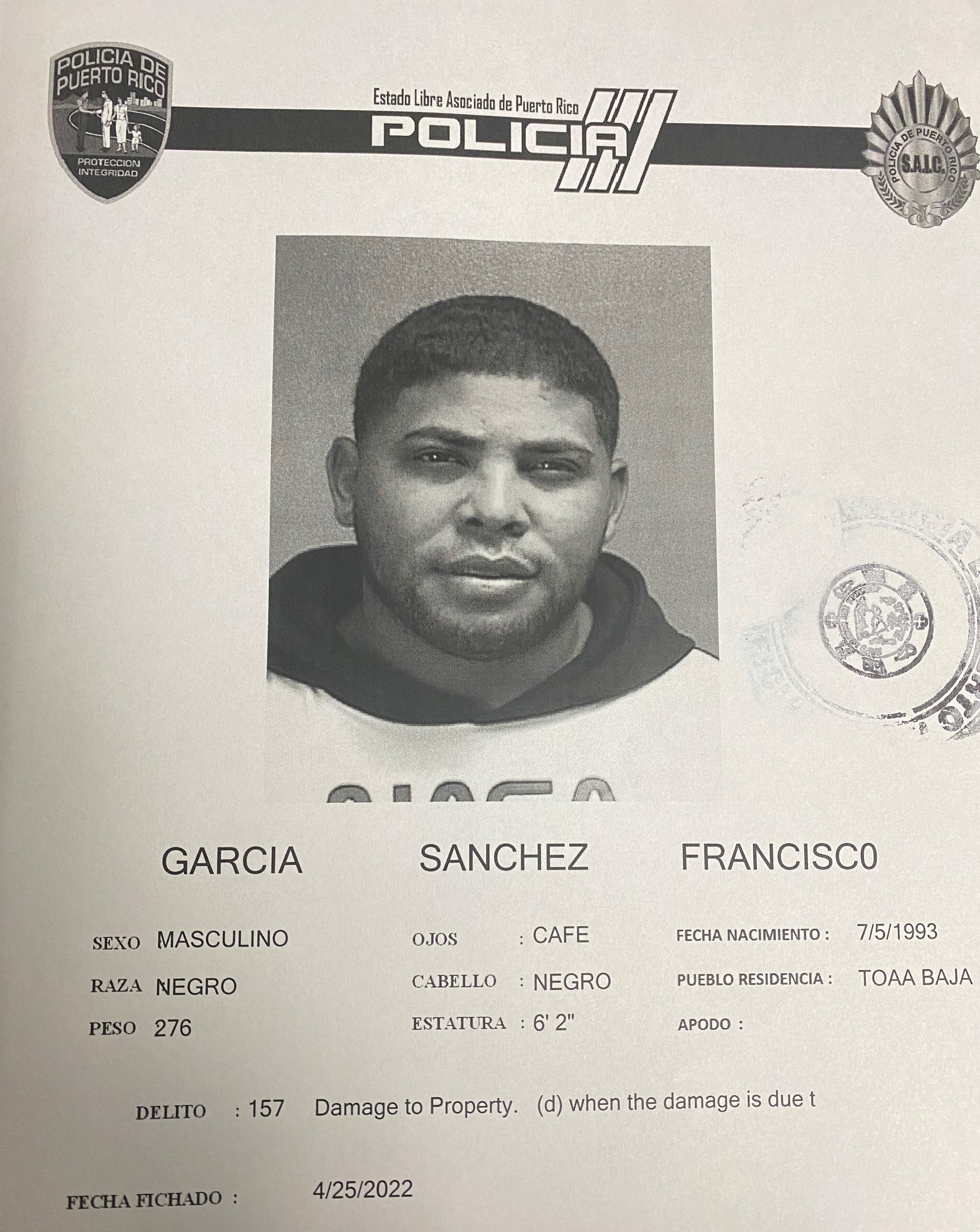 García Sánchez figuraba entre uno de los 10 más buscados del área de Bayamón por Tentativa Grave y Daño Agravado, con una fianza de $200 mil dólares, por hechos cometidos el 7 de marzo de 2022.