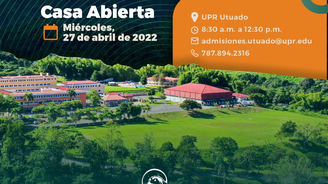La Universidad de Puerto Rico (UPR) en Utuado celebrará, mañana, miércoles 27 de abril, su cuarta casa abierta para estudiantes de escuela superior, la cual cuenta con una oferta académica que incluye programas exclusivos del recinto, como horticultura, procesamiento de alimentos, producciones y tecnología agrícola, entre otros.