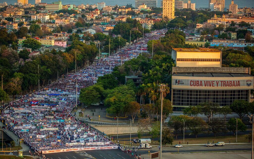 Cientos de miles de trabajadores cubanos volvieron a marchar el domingo por el día de los trabajadores por primera vez en dos años debido a las restricciones por el coronavirus y en medio de la dura crisis económica que atraviesa la isla caribeña.