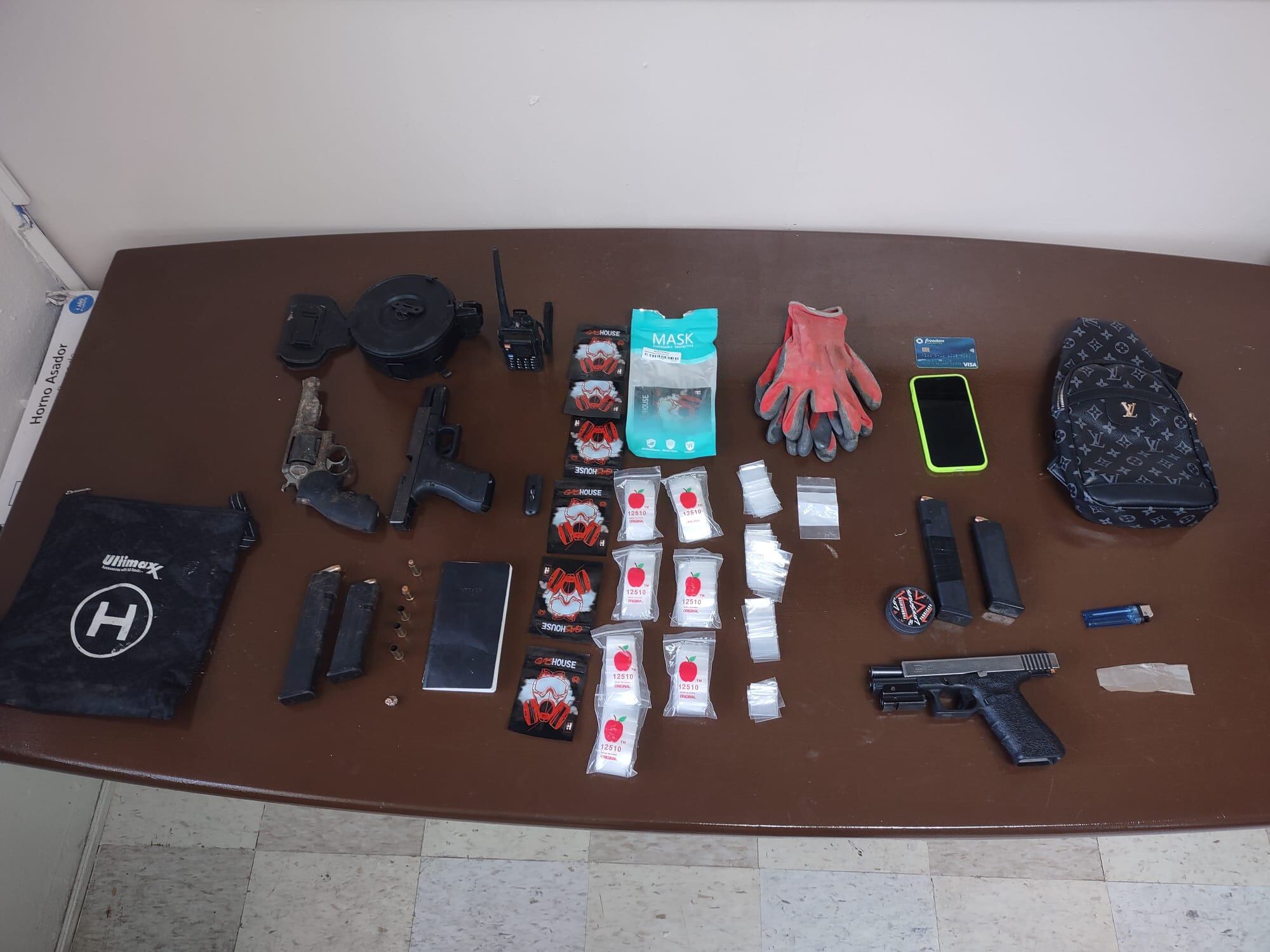 Además se dijo, que al momento de su arresto, a Trevisani Pérez se le ocupó, una pistola “Glock” calibre .40, 2 cargadores y 35 municiones calibre .40, además de 14 pastillas, dos bolsas de marihuana y $200 en efectivo.