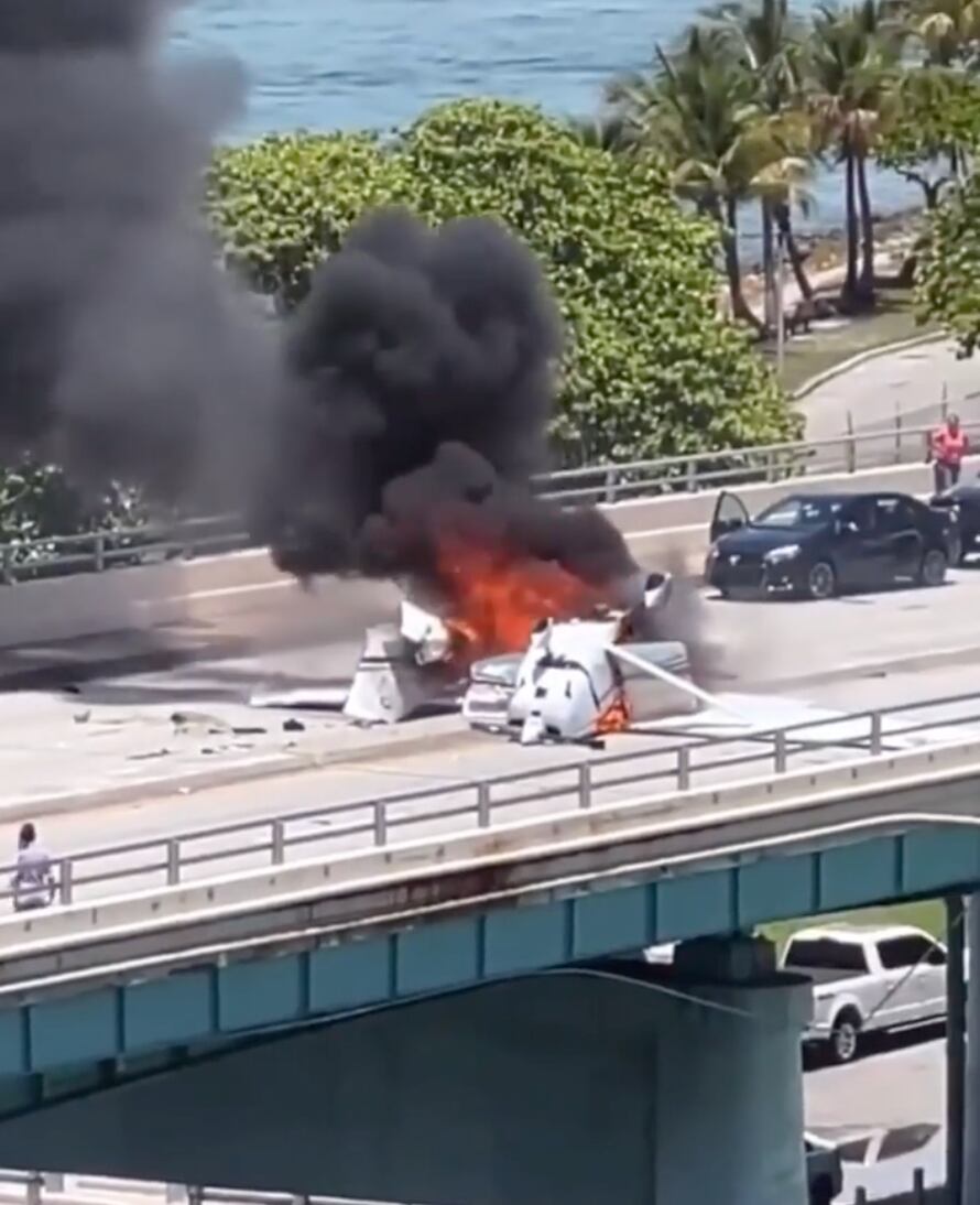 Una avioneta se incendió este sábado tras estrellarse contra el puente Haulover Inlet en Miami, dejando a cinco personas heridas.
