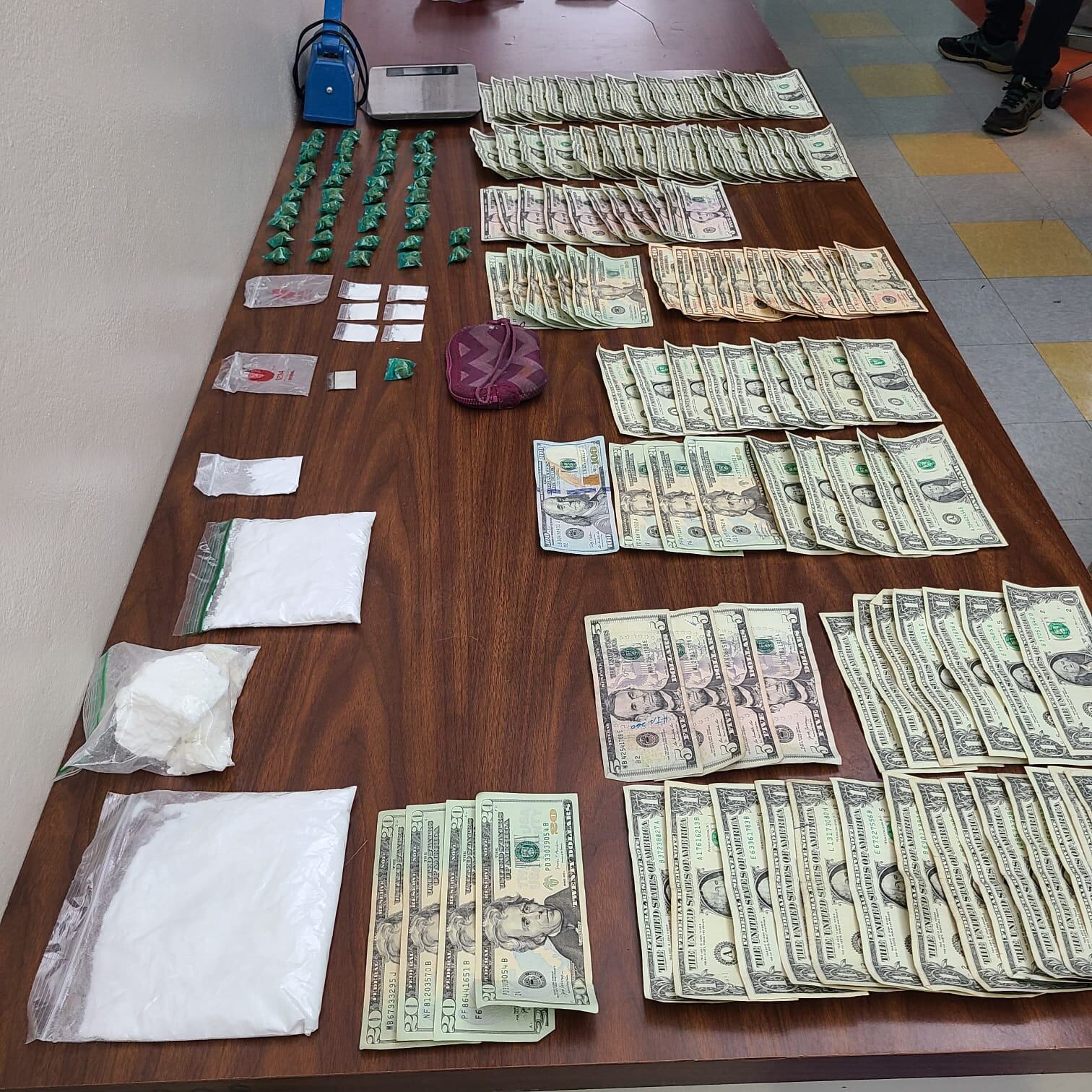 En medio de la intervención, se ocuparon: tres bolsas de cierre a presión, tamaño 6x6, que en su interior contenía cocaína, 43 bolsitas de plástico conteniendo picadura de marihuana, una balanza digital, una selladora eléctrica y 656 dólares en efectivo.
