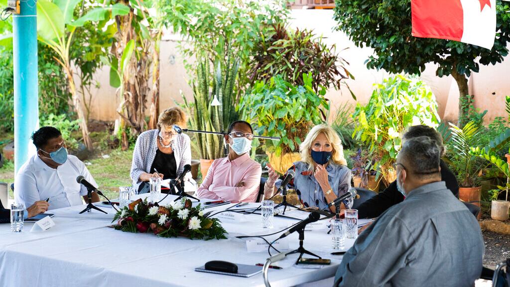 La primera dama de Estados Unidos, Jill Biden, visitó un centro que alberga a personas con VIH/Sida en la periferia este de la capital panamela y dijo que “hay esperanza en el horizonte” al conversar con enfermos y activistas.