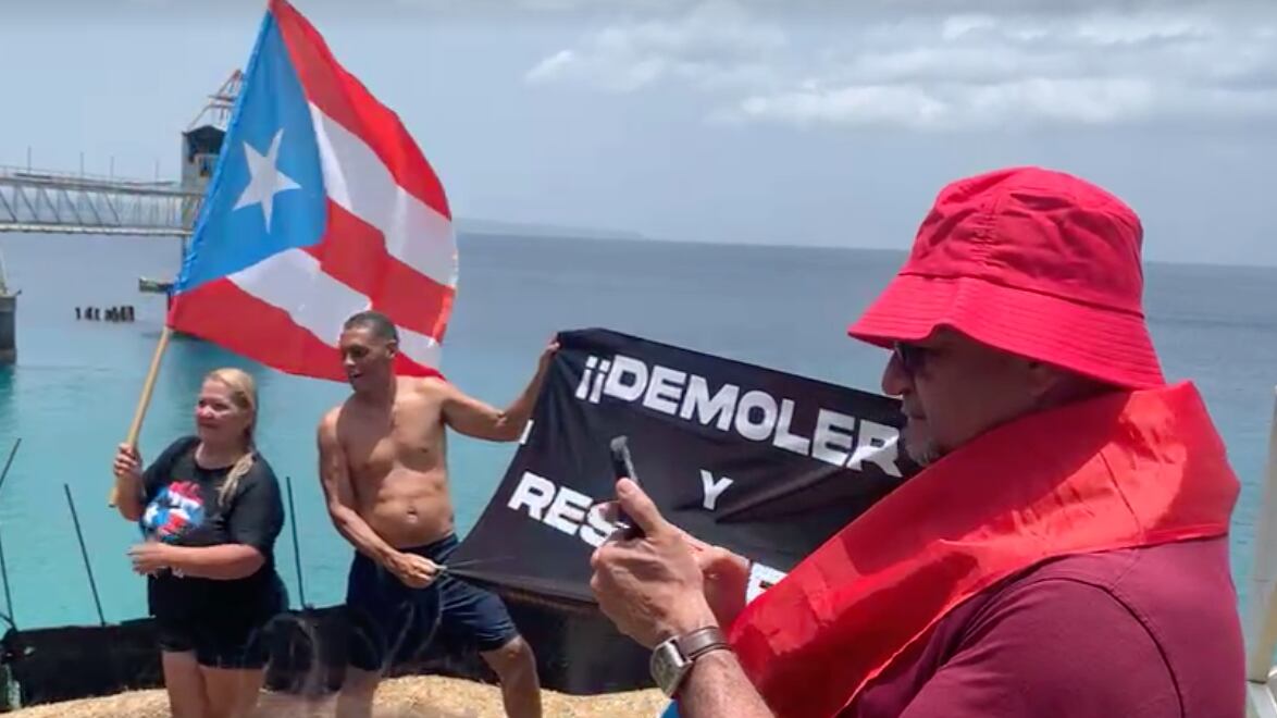 Varios manifestantes llegaron este sábado hasta la estructura en la Cueva Las Golondrinas en Aguadilla, luego de que ayer el Departamento de Recursos Naturales y Ambientales (DRNA) ordenara su demolición.