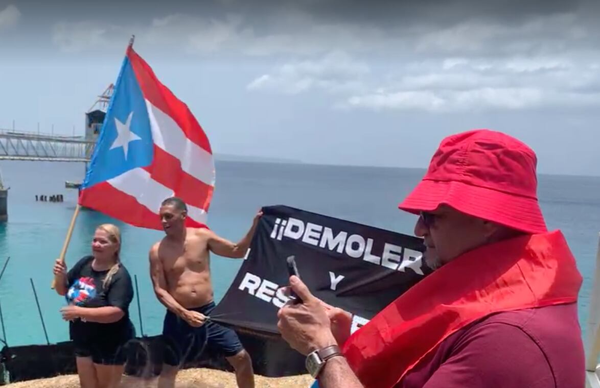 Varios manifestantes llegaron este sábado hasta la estructura en la Cueva Las Golondrinas en Aguadilla, luego de que ayer el Departamento de Recursos Naturales y Ambientales (DRNA) ordenara su demolición.