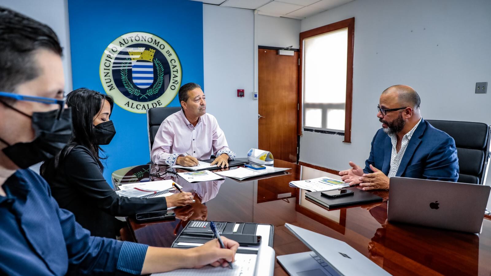 El alcalde de Cataño, Julio Alicea Vasallo, se reunió con el director de la Oficina Central de Recuperación, Reconstrucción y Resiliencia (COR3), Manuel Laboy, para establecer las prioridades de los proyectos pendientes en el municipio e integrar los esfuerzos con el equipo municipal para darle mayor celeridad a las obras a realizarse.