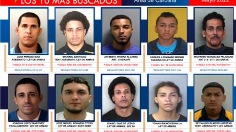 La División de Arrestos Especiales y Allanamientos del área policíaca de Carolina, publicó hoy la nueva lista de Los 10 más Buscados de esta área policíaca, acusados por asesinato, tentativa de asesinato, violación a Ley de Armas y violencia doméstica, entre otros.