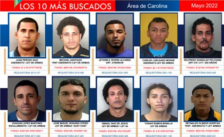 La División de Arrestos Especiales y Allanamientos del área policíaca de Carolina, publicó hoy la nueva lista de Los 10 más Buscados de esta área policíaca, acusados por asesinato, tentativa de asesinato, violación a Ley de Armas y violencia doméstica, entre otros.
