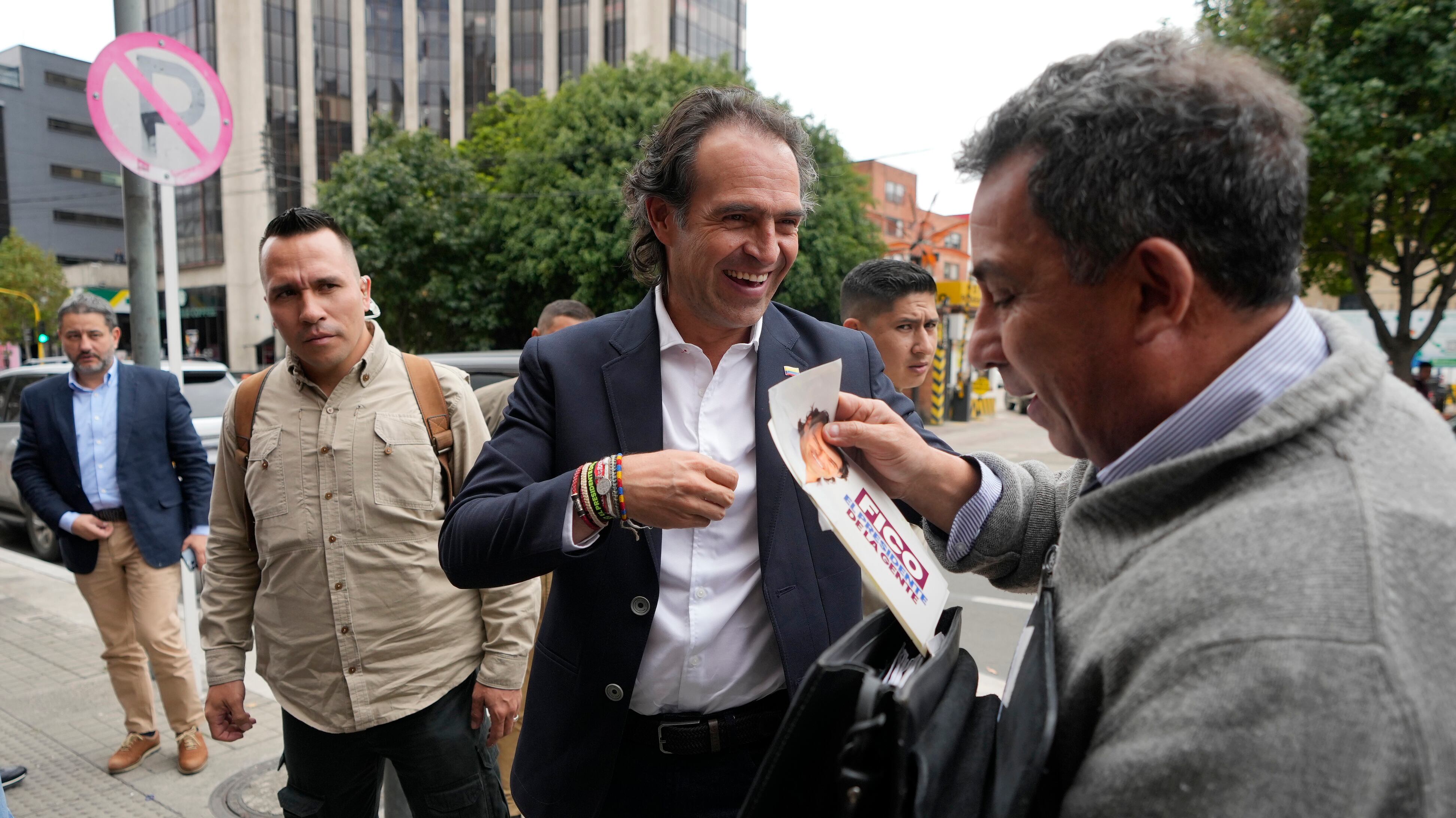 Federico Gutiérrez, candidato presidencial de Colombia, saluda a un simpatizante antes de dar una conferencia de prensa en Bogotá, Colombia, el miércoles 25 de mayo de 2022. Los colombianos acuden a las urnas el 29 de mayo para elegir un nuevo presiden AP (Fernando Vergara/AP)