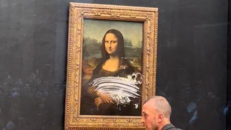 Un visitante al Museo de Louvre le lanzó un pastel a la Mona Lisa en exhibición, generando el rechazo del resto de los asistentes, pero no daños a la obra, pues está protegida por un vidrio.