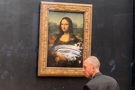 Un visitante al Museo de Louvre le lanzó un pastel a la Mona Lisa en exhibición, generando el rechazo del resto de los asistentes, pero no daños a la obra, pues está protegida por un vidrio.