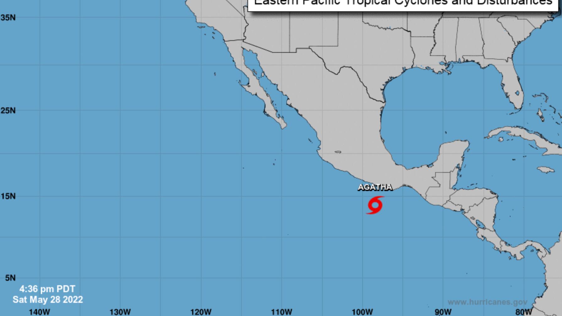 Agatha, la primera tormenta tropical de la temporada de huracanes de 2022 en el Pacífico, se formó el sábado frente a la costa sur de México.
