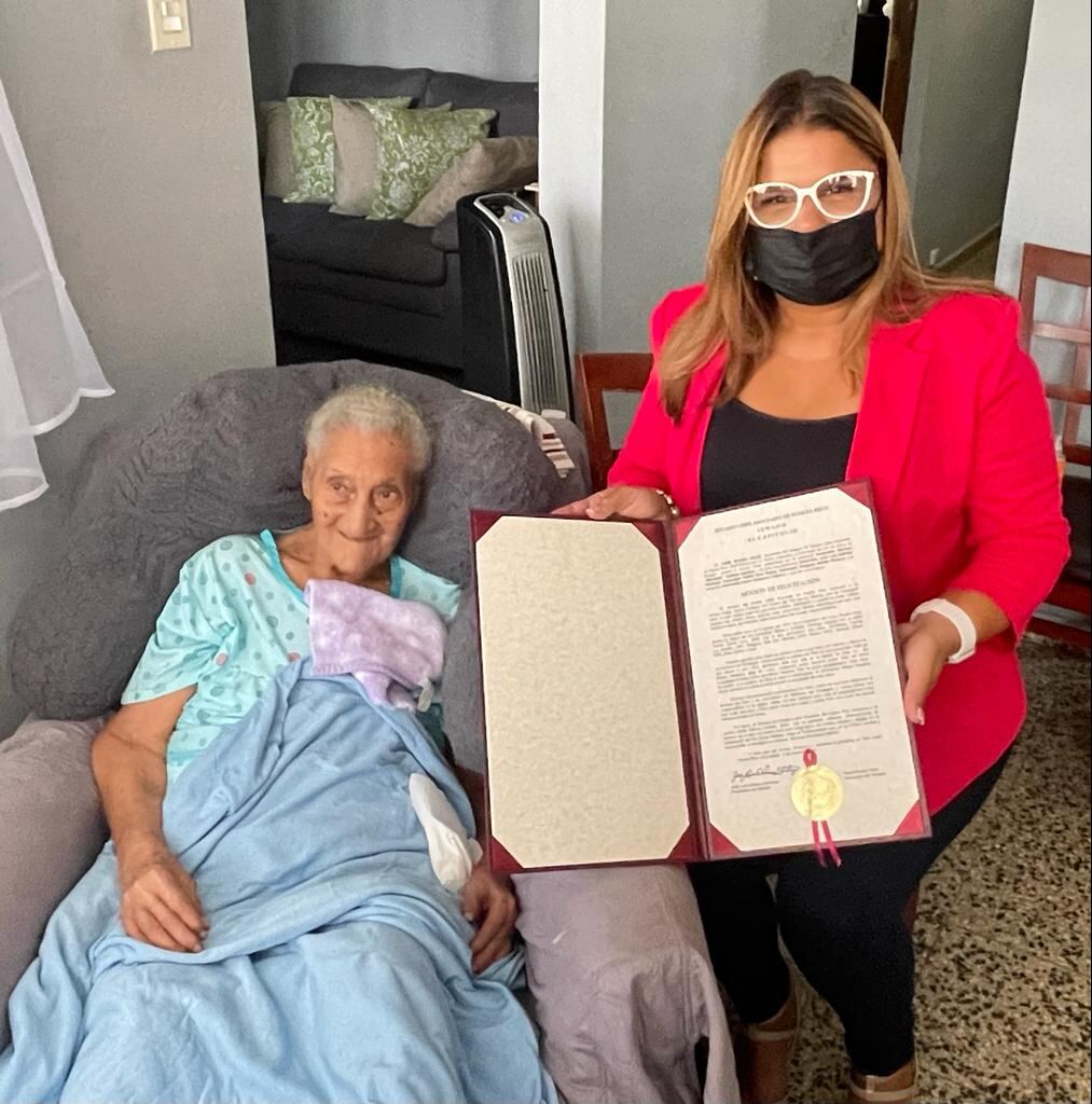 La senadora del Partido Nuevo Progresista (PNP), Marissa ‘Marissita’ Jiménez Santoni, reconoció a Adela García Cordero como una de las mujeres más longevas de Puerto Rico.