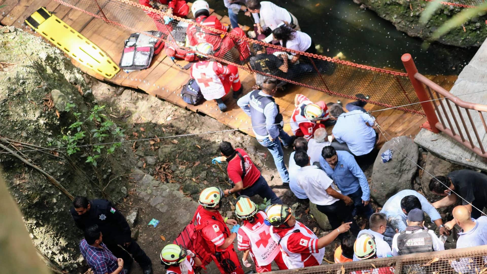 El puente colgante del “Paseo Turístico Ribereño Alfonso Sandoval Camuñas” colapsó esta mañana cuando el alcalde de Cuernavaca, Morelos, José Luis Urióstegui y otras personas caminaban por él.