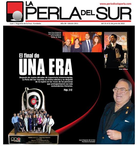La gerencia del periódico regional La Perla del Sur anunció que hoy, miércoles, 15 de junio de 2022 imprimirán su última edición luego de casi 40 años de brindar información al pueblo de Ponce y Puerto Rico. El sitio web de la publicación continuará operando hasta cumplir los compromisos comerciales contraídos.