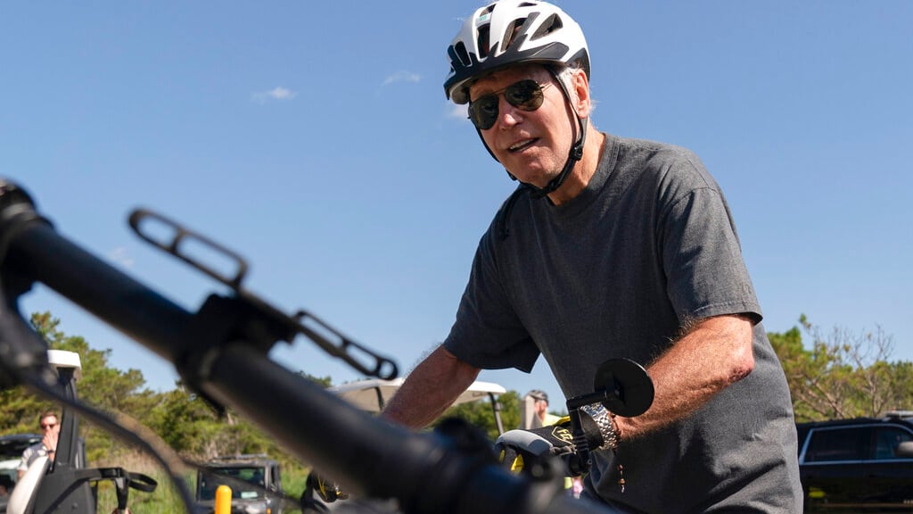 Según se muestra en el vídeo, Biden se trató de bajar de la bicicleta luego de finalizar el recorrido en Cape Henlopen State Park.