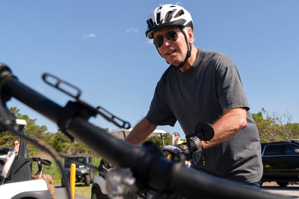 Según se muestra en el vídeo, Biden se trató de bajar de la bicicleta luego de finalizar el recorrido en Cape Henlopen State Park.
