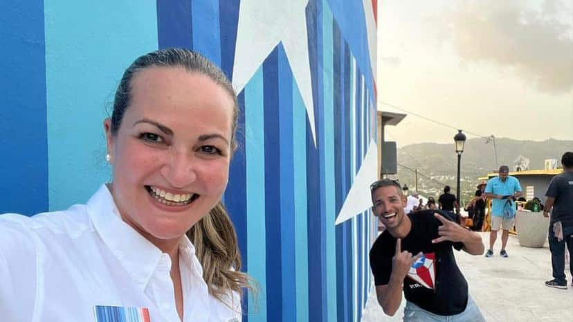 El artista Héctor Collazo, mejor conocido como Héctor PR, por su proyecto “78 Pueblos, 1 Bandera”, pintó en la comunidad el Cerro de Gurabo la bandera #75, junto a la meteoróloga de TeleOnce, Deborah Martorell.