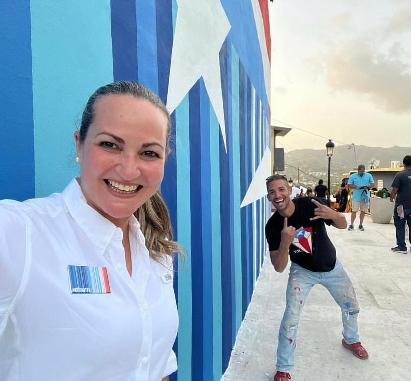 El artista Héctor Collazo, mejor conocido como Héctor PR, por su proyecto “78 Pueblos, 1 Bandera”, pintó en la comunidad el Cerro de Gurabo la bandera #75, junto a la meteoróloga de TeleOnce, Deborah Martorell.