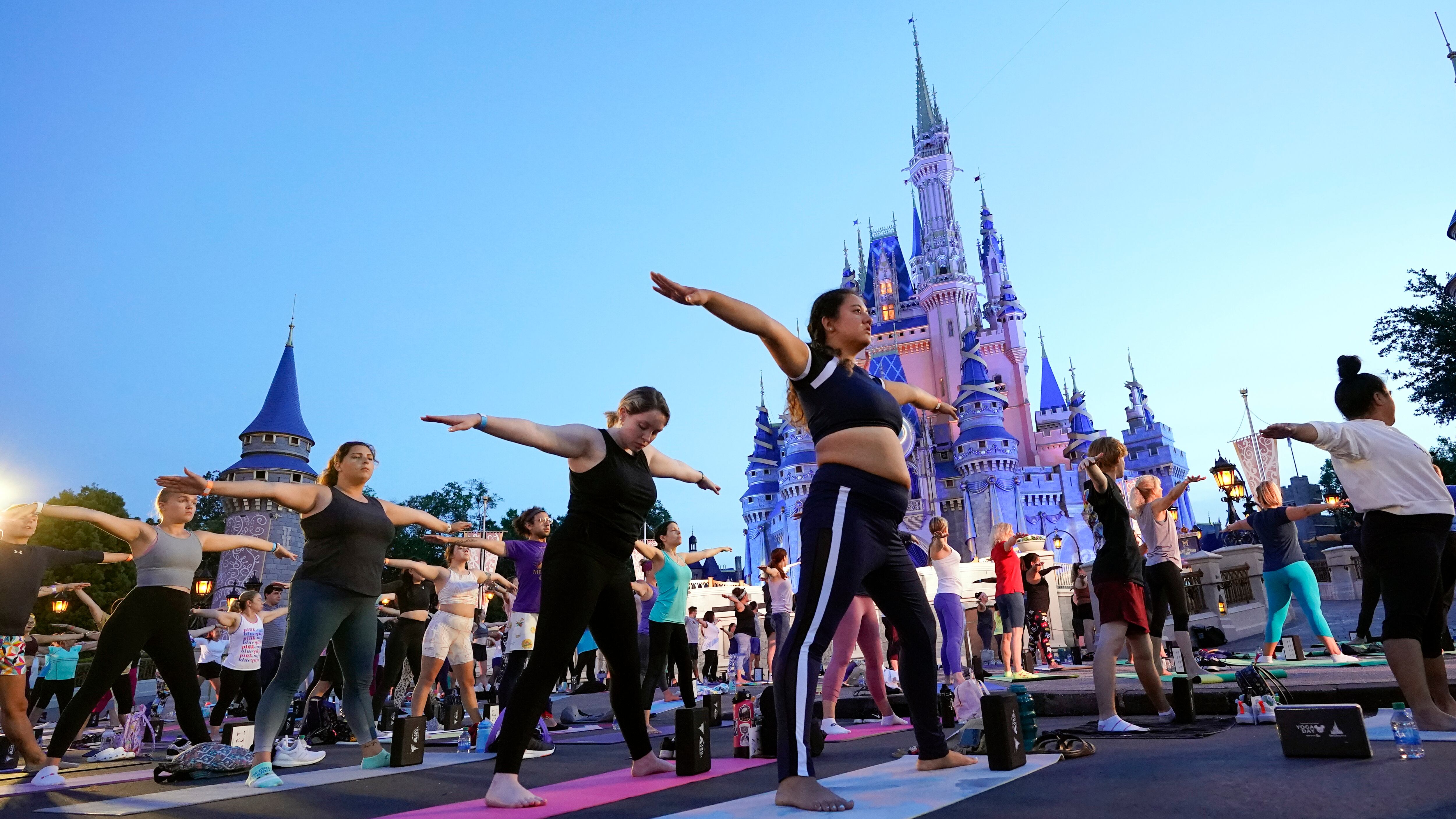 En Florida, más de 1.700 trabajadores de Disney extendieron sus colchonetas de yoga frente al Castillo de Cenicienta, mientras en California otros 1.000 empleados comenzaron su mañana con yoga frente al Castillo de la Bella Durmiente en Disneyland Resort.
