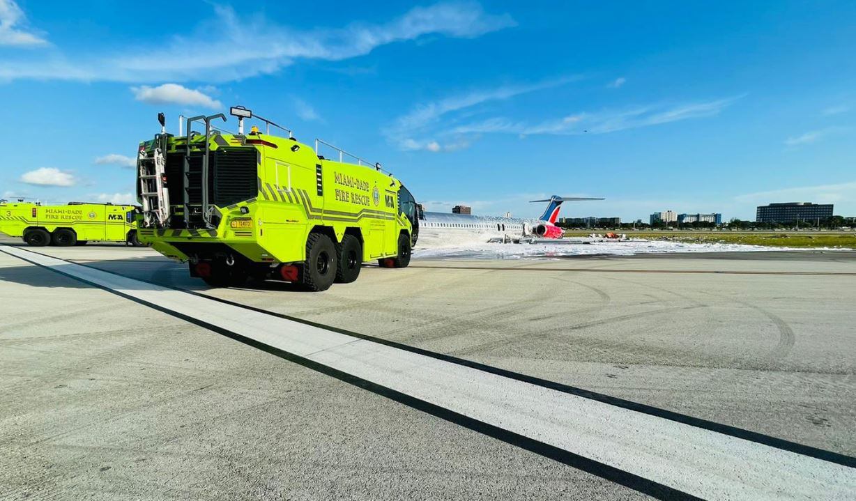 El avión aterrizó alrededor de las 5:30 p.m., cuando colapsó el tren de aterrizaje del avión, explicaron funcionarios del Aeropuerto Internacional de Miami.