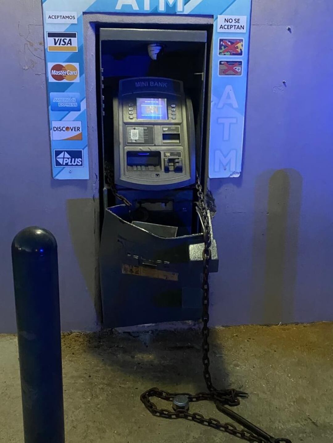 Las autoridades informaron que durante la madrugada de hoy, miércoles, se reportaron unos daños a una ATM, ubicada en la carretera 119, del barrio Ciénega en Camuy.