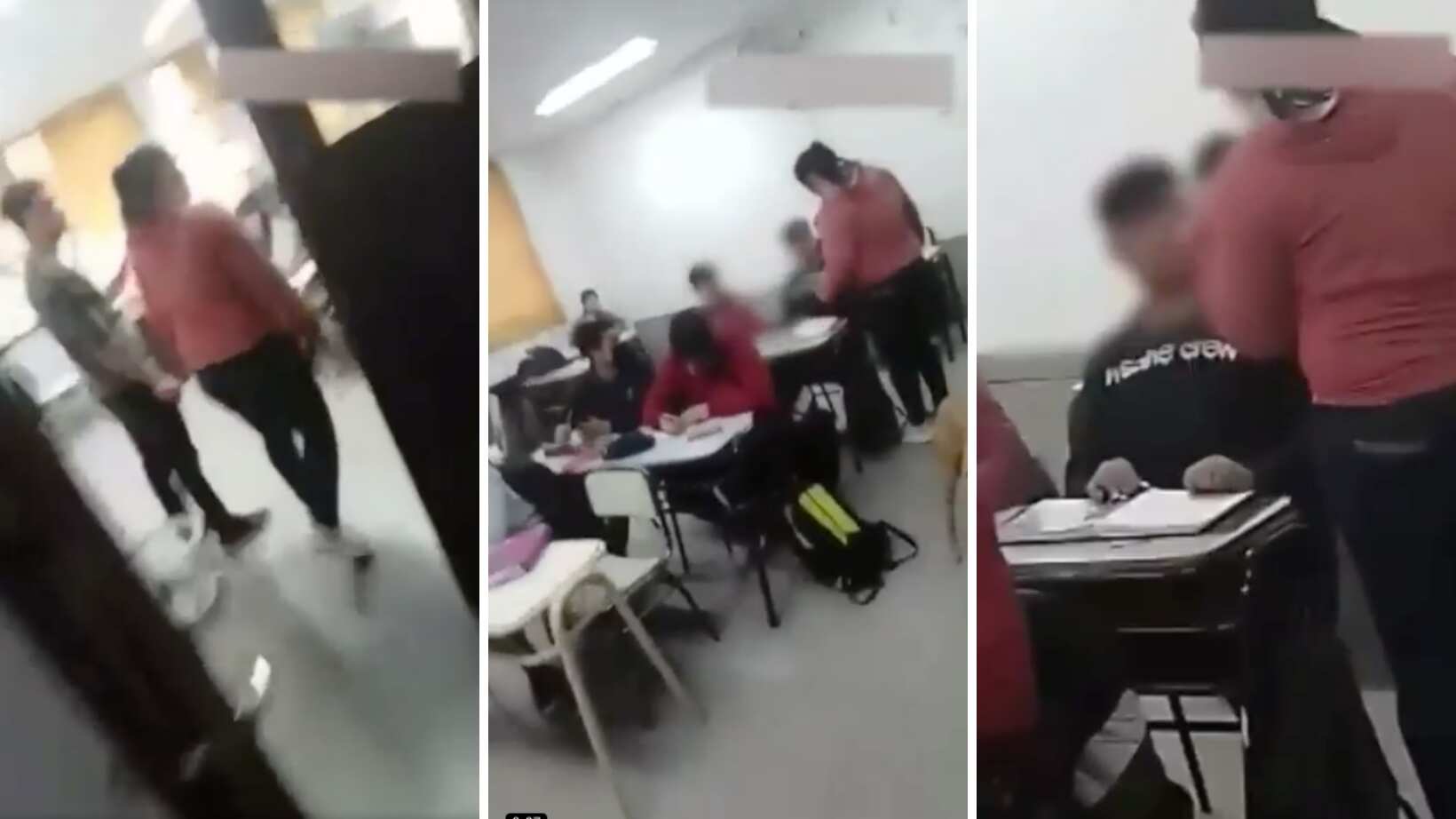 El momento fue grabado y compartido en redes sociales, lo que causó que se convirtiera en viral, en donde se observa como la protagonista agredió al estudiante.