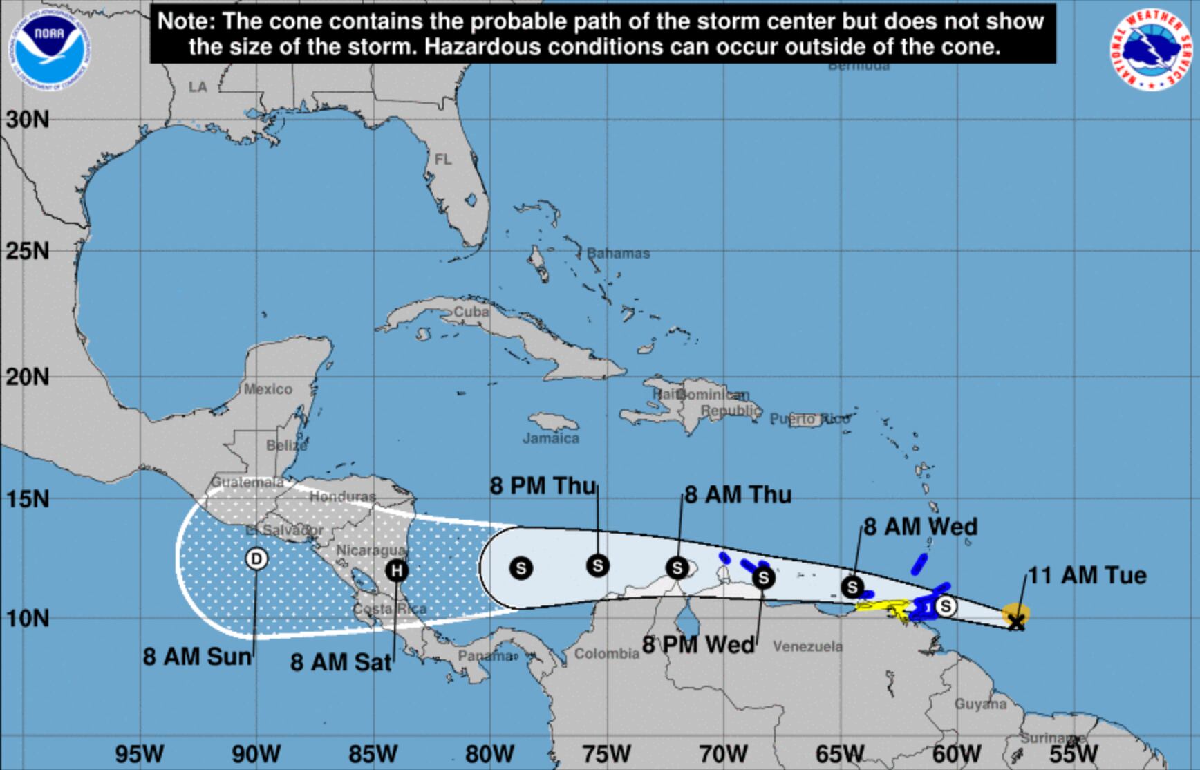 El Centro Nacional de Huracanes de Estados Unidos vaticinó que el sistema climático se convertirá en la tormenta tropical Bonnie y que pasaría por las Islas Barlovento el martes en la noche.