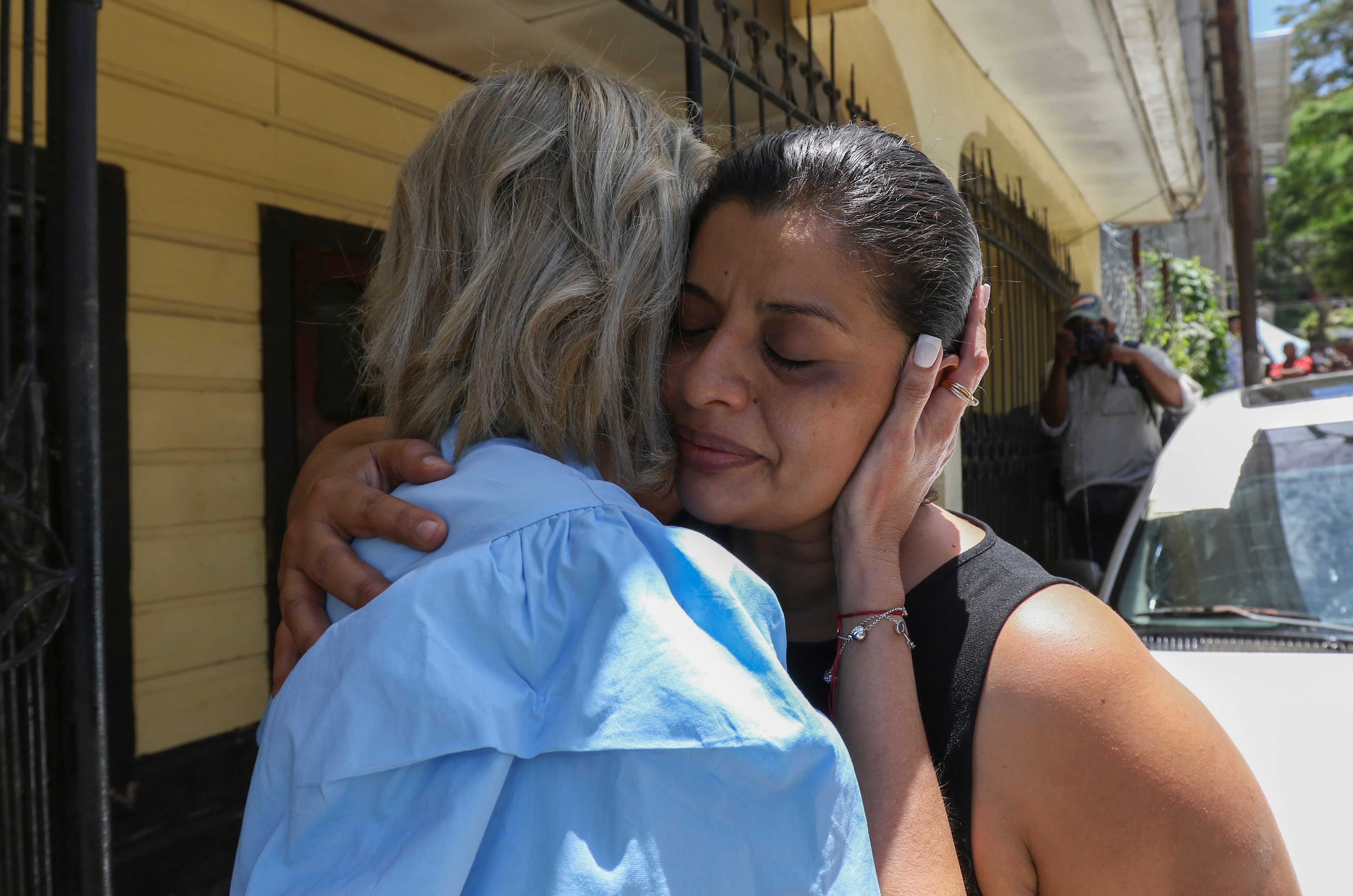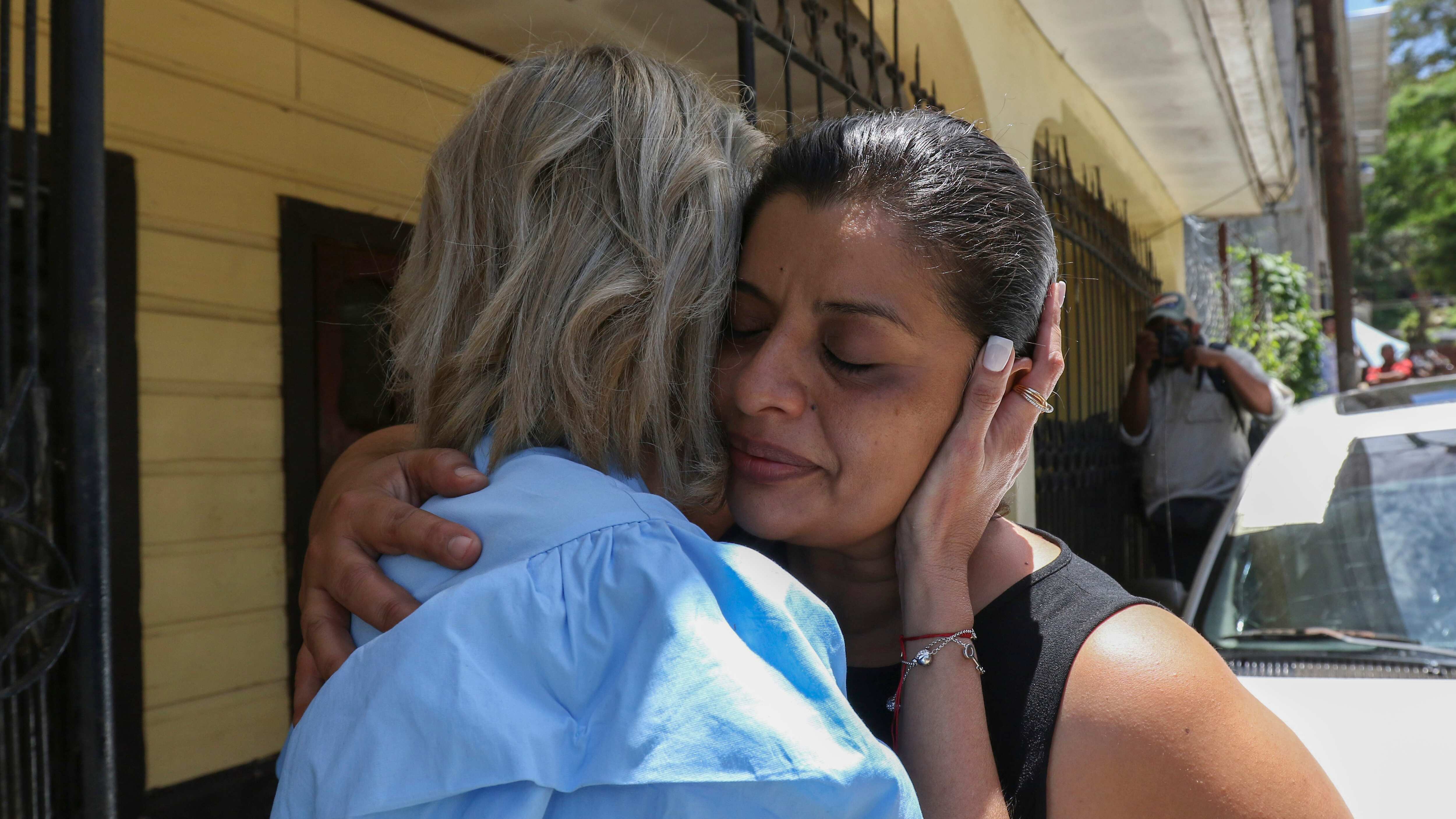 Karen Caballero, la madre de Fernando Redondo Caballero y Alejandro Andino Caballero, fallecidos en San Antonio, Texas, tras ser encontrados en un camión lleno de migrantes llevados de contrabando a Estados Unidos, es consolada en una conferencia improvi AP (Delmer Martinez/AP)
