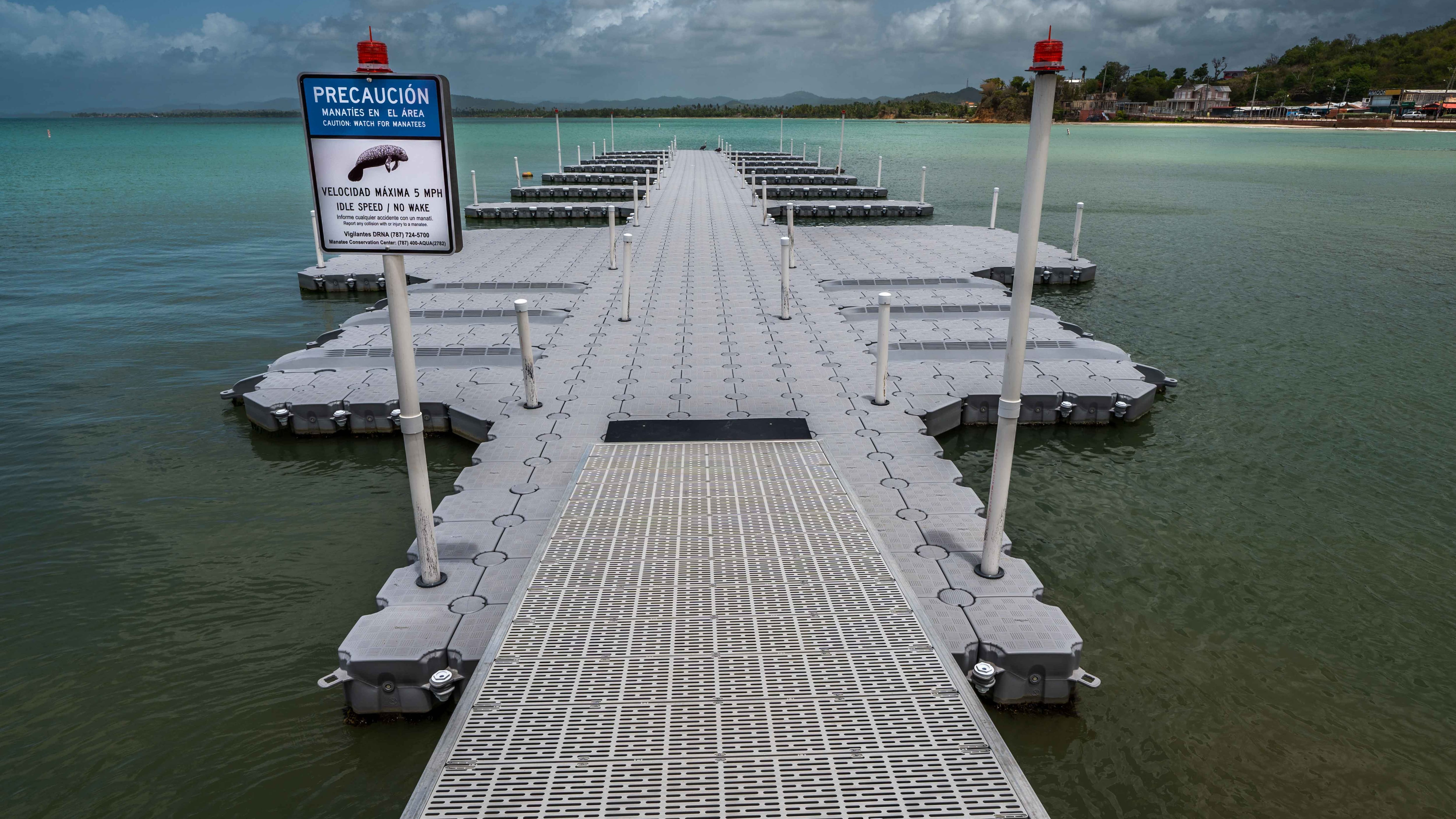 Tras una inversión de $548,017.09, el muelle flotante mide 210 pies de largo por 42 pies de ancho y es una obra que responde a las necesidades del municipio costero. Además del nuevo muelle, se realizaron mejoras a la plataforma de entrada, reparaciones a la losa e instalación de “topping” de piso para la losa de hormigón al igual que de “railings” en el área de la plataforma de entrada al muelle flotante.
