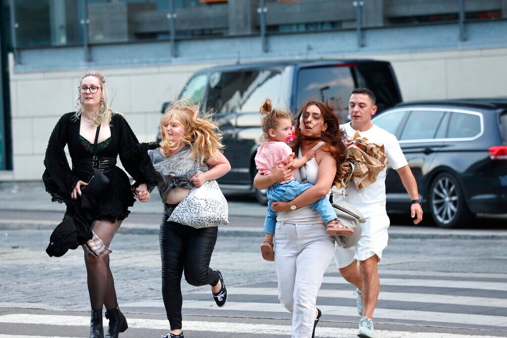 En las imágenes del lugar donde ocurrió la balacera se veía a la gente corriendo afuera del centro comercial, y TV2 publicó una foto de un hombre que era colocado en una camilla. Después del tiroteo, un enorme contingente de policías fuertemente armados patrulló la zona, y en el estacionamiento también había varios vehículos de los bomberos.